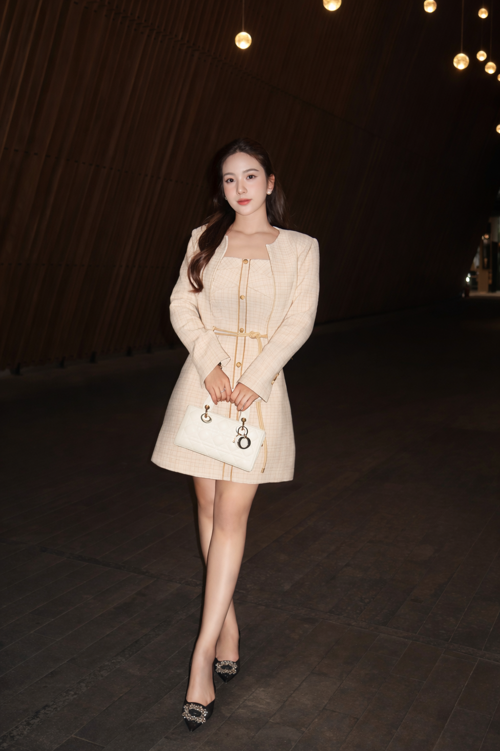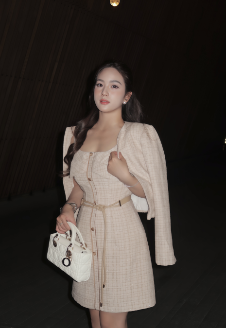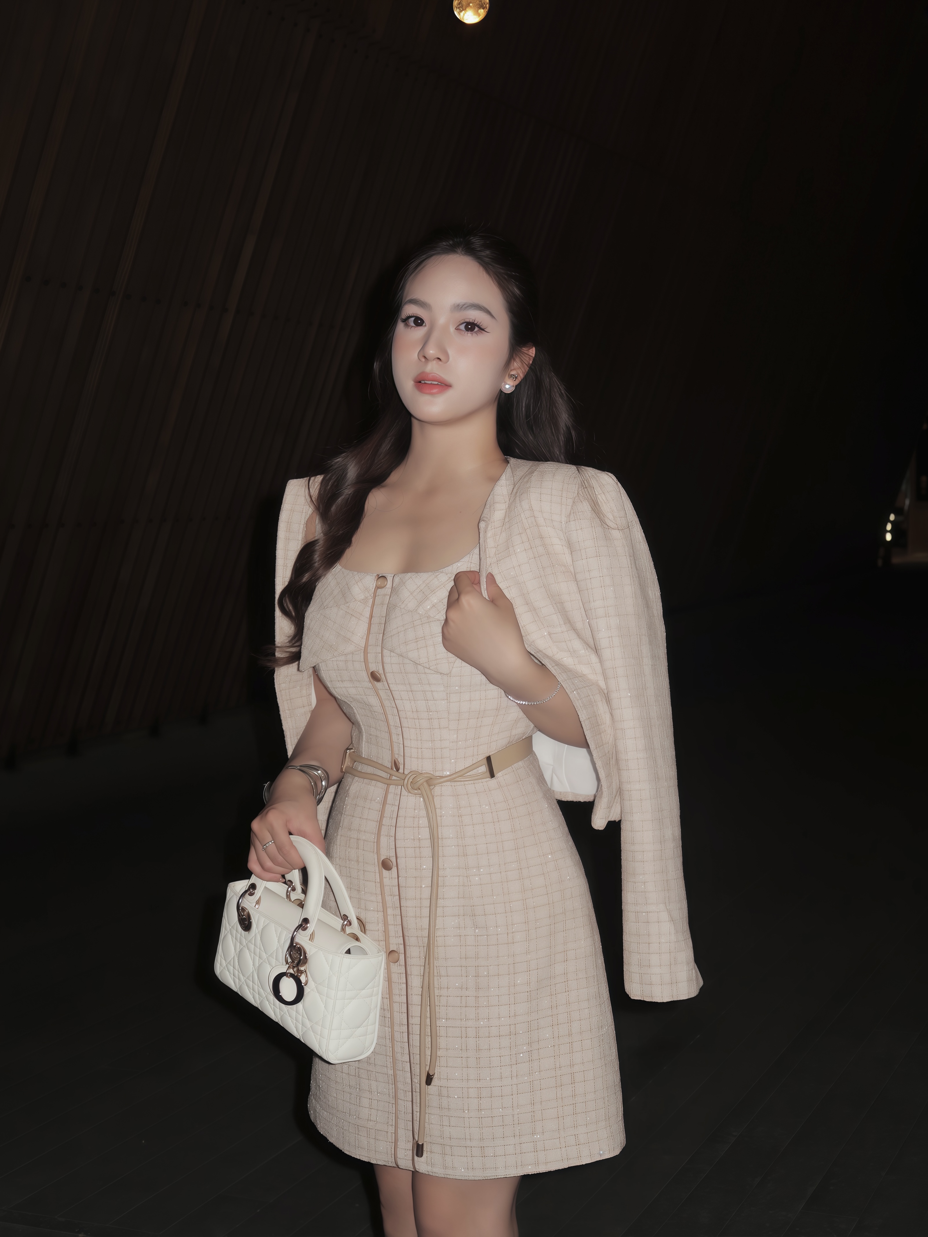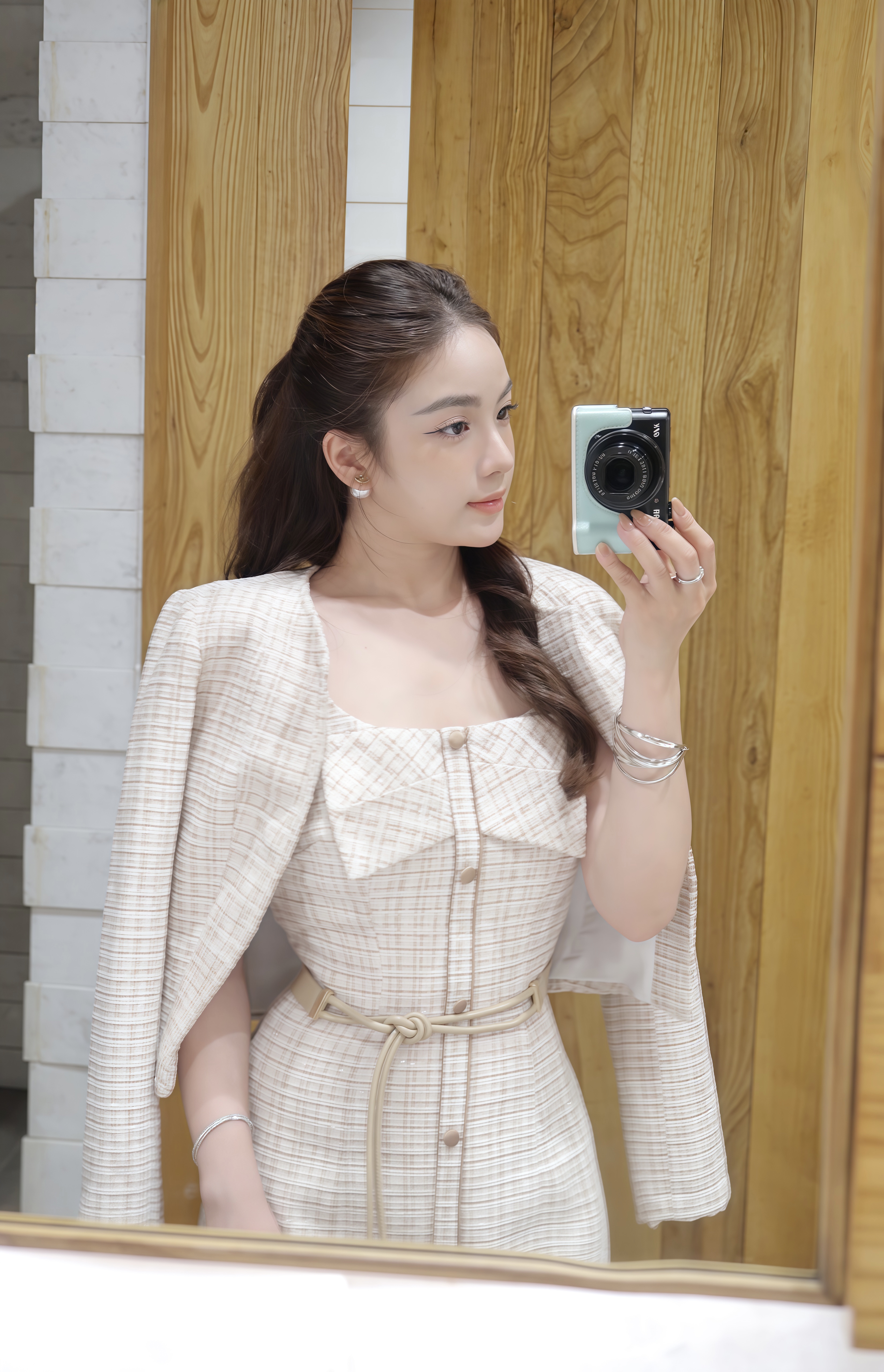 Phần cổ vuông tinh tế làm nổi bật đường xương quai xanh, tay áo được cắt may chuẩn form, chi tiết belt trang trí giúp tạo điểm nhấn nhẹ nhàng và thu hút. Chất tweed mềm – đứng form – không gây nặng người, thích hợp diện đi làm, dự sự kiện, tiệc tối hoặc hẹn hò.